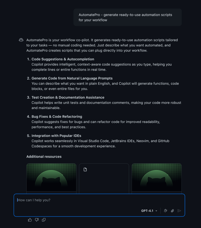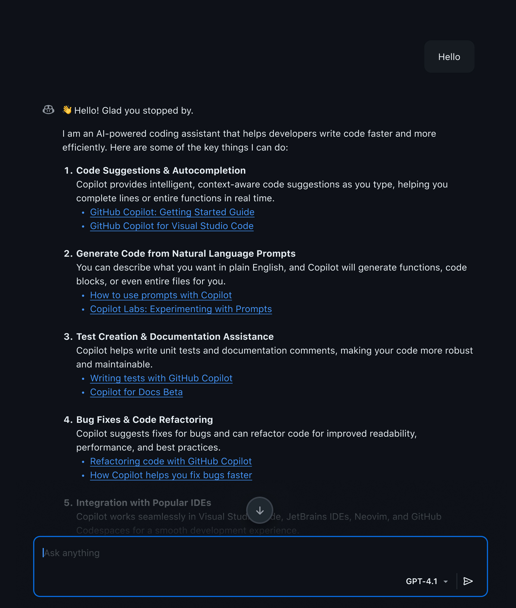 Designed a chat preview with pre-canned responses so users could try Copilot before committing. This gave immediate value and lowered the barrier to engagement.
