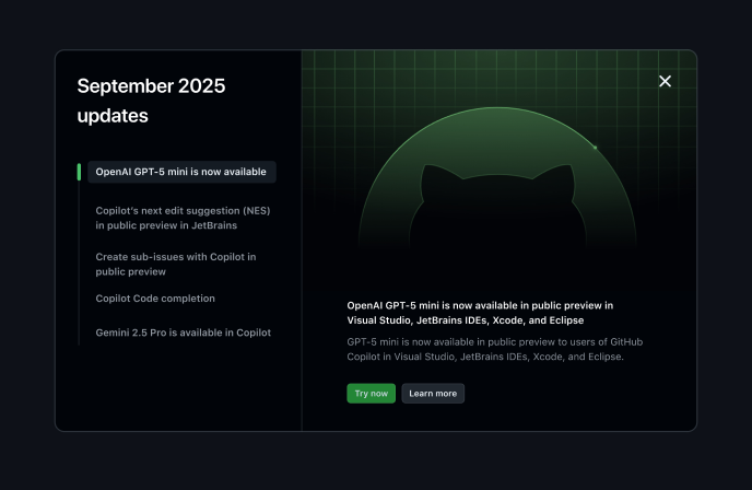 GitHub Copilot was rapidly gaining adoption, but we faced two major challenges. Users could only experience its value after completing a long and leaky checkout flow, and once inside, they often missed important product updates because of the pace of releases. This meant excitement was high at sign-up, but momentum stalled before activation and ongoing adoption. Our team set out to redesign the logged-out experience to let developers preview Copilot upfront, reduce checkout friction, and build a reusable system of in-product nudges to keep users engaged as the product evolved.