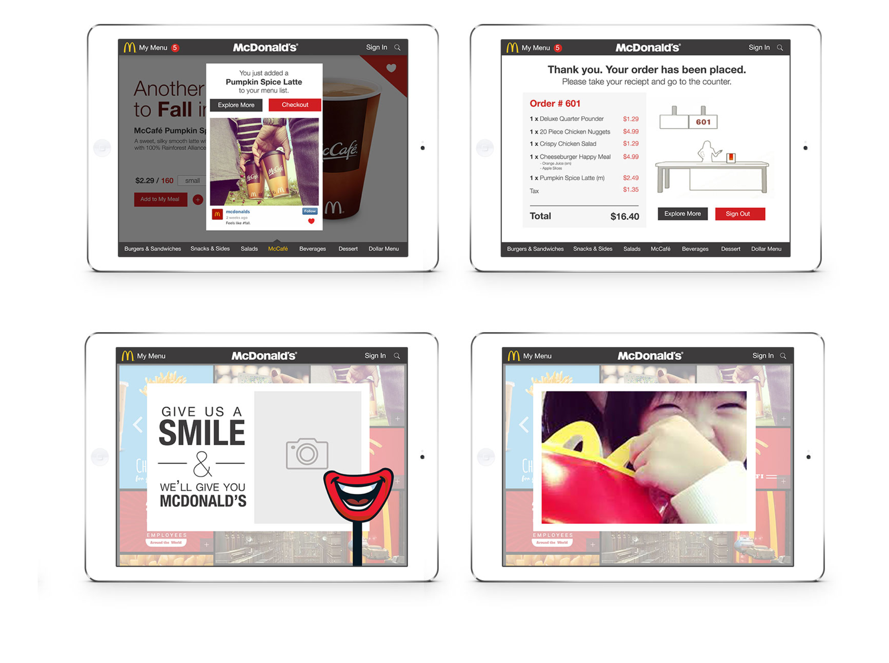McDonald’s may be the king of fast food, but even they seek to constantly outdue themselves. Happy Kiosk is an interactive kiosk designed to feed you McD pop culture, social media, and entertaining marketing collateral with the sole goal of increasing user generated content. Because what better way to get people to post about their McDonald’s love than to catch them in the stores while they’re eating? And of course, it would be obsolete if it didn’t also include an ordering system to make picking up your meals even faster.